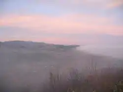 ![]() Early morning view from Heimburg Castle looking west over the village towards the Harz | |