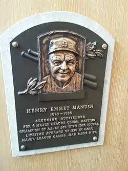 Manush was inducted into the Michigan Sports Hall of Fame in 1964,[65] and later posthumously into the Alabama Sports Hall of Fame in 1972.[66]