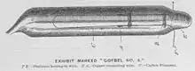 On April 30, 1882 the New York Times reported on an exhibition of incandescent light bulbs in Göbel's shop. According to this report, Göbel claimed the electric light was by no means as new an invention as it was popularly supposed to be and that he knew this kind of light since his time in Germany. He affirmed he produced electric lights since the 1850s without giving technical details. The lamps at exhibition were incandescent light bulbs with carbon-filaments of high resistance made of fibres of reed.[8]