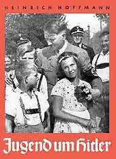 During the Third Reich Hoffmann assembled many photo-books on Hitler, such as The Hitler Nobody Knows (1933) – a book that Ron Rosenbaum calls "central to Hitler's extremely shrewd, extremely well-controlled effort to manipulate his image ... to turn his notoriously non-Nordic-looking foreignness, his much-remarked-upon strangeness, into assets to his charisma"[15] – and Jugend um Hitler ("Youth Around Hitler") in 1934. In 1938 Hoffmann wrote three books, Hitler in Italy, Hitler befreit Sudetenland ("Hitler Liberates Sudetenland") and Hitler in seiner Heimat ("Hitler in his Homeland"). His Mit Hitler im Westen ("With Hitler in the West") was published in 1940. His final book of this period, Das Antlitz des Führers ("The Face of the Führer"), was written shortly before the outbreak of the Second World War. In 1936 he had effectively seized control of stereographer Otto Schönstein's publishing house, Raumbild-Verlag, which effectively put him in charge of all mass-market stereoscopic (3D) photography in Germany until the end of the Second World War.[48]