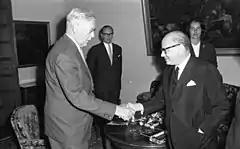 ![]() Krone (left) meeting Colombian politician Carlos Lleras Restrepo, 1964 | |