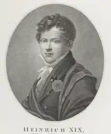 Heinrich XIX, Prince Reuss of Greiz (German: Heinrich XIX Fürst Reuß zu Greiz; 1 March 1790 – 31 October 1836) was Prince Reuss of Greiz from 1817 to 1836.