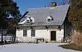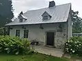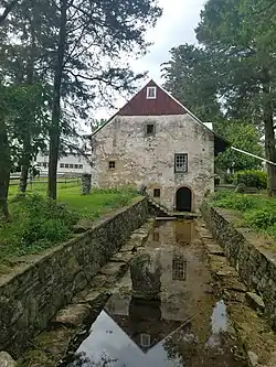 The structure was built into a bank over an everflowing spring that flows naturally from the bedrock into a creek from an arched opening in the basement. The spring provided fresh drinking water and provided a naturally cool area for storage. The building has an Alsatian / Swiss appearance.[4]