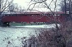The Heirline Covered Bridge is a historic wooden covered bridge located at Harrison Township and Napier Township in Bedford County, Pennsylvania. It is a 136-foot-long (41 m), Burr Truss bridge with a medium pitched gable roof, constructed in 1902. It crosses the Juniata River. It is one of 15 historic covered bridges in Bedford County.[2]