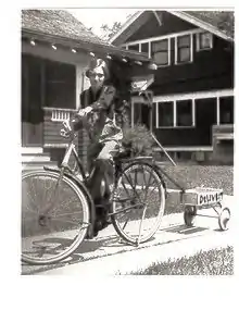 Daniels was born in 1927 in Aberdeen, South Dakota, the daughter of Lloyd Allyn Daniels, a pharmacist, and Jessie Mabbott Daniels, a homemaker and former college-level mathematics teacher.[1] Her sister Marjorie Jean Daniels, six years her elder, was born in 1921.[2] As a child growing up during the Great Depression in a small railroad town on the American prairies,[3] she wasn’t a fan of the frilly dresses that her mother made for her. She preferred to put on her overalls and go off for a ride on her bicycle.[4] Later in their teenage years, both Marjorie and Helen helped out in their father’s drug store in various ways. After Marjorie left for college, Helen took on more responsibilities in the home, also helping her father with the running of Daniels Drugs.[5]