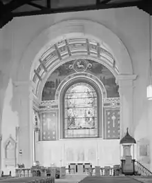 Armstrong's masterpiece may be the east window at Old St. Paul's Episcopal Church in Baltimore, Maryland, created as part of a general renovation of the church in 1904. Depicting the glorification of God, it is the focal point of the interior.[14] Above it is a mural showing the Lamb of God, and beneath it is a stone reredos by Tiffany with other Christian symbols such as the peacock (symbolizing resurrection).[14]