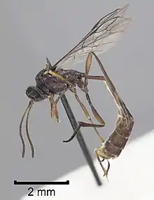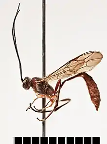 Helenanomalon is a genus of ichneumon wasp belonging to the subfamily Anomaloninae. It contains two species, which are endemic to the island of Saint Helena in the South Atlantic Ocean.[2]