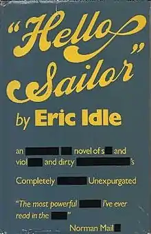 Eric Idle wrote Hello Sailor, his first novel, in 1970.[1] The book was first printed in 1975 hardcover by the London publishers of fiction, Weidenfeld & Nicolson.[3] An article on h2g2 attributes the delay to Idle's distrust of the publishing industry.[1] As a literary work from a highly notable performer, the novel was reviewed in The Times Literary Supplement on 21 March 1975.[4] The original hardcover book did not sell very well,[5] but the book was reprinted the same year by Futura Publications.[2] This paperpack issue of the novel was a moderate success.[5]