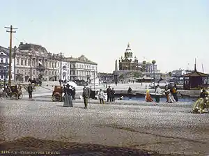 Helsinki slang first evolved in the late 19th century as a sociolect of the multilingual Helsinki working class communities, where Swedish and Finnish speaking youth lived together with Russian, German and various other language minorities.[1][2] Helsinki slang is not a typical dialect of Finnish, because unlike many other parts of Finland, the Helsinki area was predominantly Swedish-speaking during the time when the city of Helsinki originally evolved, and thus Helsinki slang is characterised by an unusual, strikingly large number of obvious foreign loanwords. Nevertheless, Helsinki slang is counted as a dialect on its own right, among the "purer" dialects of other parts of Finland.