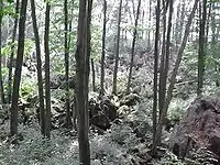 The Felsenmeer nearby is a small Karst area, partially created by medieval mining, now located in a beech forest.
