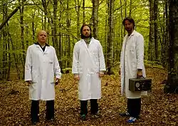 Hemmelig Tempo made their first public appearance dressed in white laboratory coats in Bergen, Norway in 2007.[2] Combining a quasi-scientific approach with performance, improvisation and avant-garde electronical sound art, the group became known for their satirical role-play[3] and "live research" performances[4] featuring a vast number of diy electronical gadgets, synthesizers, transistor radios, household objects and machines.