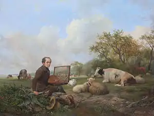 The Artist Painting a Cow in a Meadow Landscape. Oil on panel, 1850. Rijksmuseum[1]