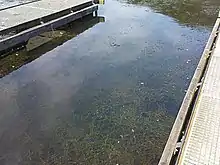 Due to the low water depth (less than 50 cm in some places) at times and especially due to the mass proliferation of the waterweed Elodea in summer since the late 1990s, water sports on the Hengsteysee have been severely curtailed.[4]