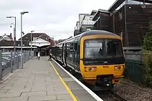 The station has a single terminal platform, which is long enough to accommodate an eight coach train.[2] There is a station building, with waiting area, ticket office and self-service ticket machines, together with a 280 space car park. The station is staffed in the mornings only, on Mondays to Saturdays.[1]