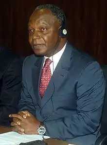 During the campaign for the July 2009 presidential election, Ossébi worked on President Sassou Nguesso's re-election campaign as Spokesman for Political Affairs, a post he shared with François Ibovi.[10] After winning re-election, Sassou Nguesso moved Ossébi to the post of Minister of Scientific Research on 15 September 2009.[11] At the PCT's Sixth Extraordinary Congress, held in July 2011, Ossébi was elected to the PCT's 51-member Political Bureau.[12] In a minor government reshuffle on 12 December 2011, he switched ministries with Bruno Itoua, becoming Minister of Energy and Hydraulics.[13][14] For Ossébi, the move was viewed as a promotion to a more important ministry.[14]