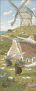 Between 1882 and 1886 Rivière created a large number of etchings. He also showed an interest in photography, making a series of picturesque scenes of everyday life.[5] He later experimented with colour woodcuts and chromolithography in the late 1880s. Rivière first visited Brittany in 1884, spending most of his summers there until 1916. Together with bustling Parisian life, rural Brittany constituted the majority of the subjects of his landscape works.