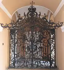 Henrik Fazola was born in 1730 to a wealthy family in Würzburg where he became an acknowledged smith with his younger brother, Lénart Fazola. They visited some Western-European countries in order to learn more about their profession and improve themselves to a higher level.[2] In 1741, Maria Theresa, the Queen of Hungary nominated Ferenc Barkóczy as the bishop of Eger who invited a lot of foreign masters for his developer constructions in the city, inter alia the avowed smith, Henrik Fazola from Würzburg, in 1758.[2][3] As he did the orders of the bishop at the highest artistic quality, he got more and major errands from the Church official and became a well-off citizen of Eger. During this period, he made the wrought iron gates and lunette of the County Hall of Eger with grapes and crests.[2][5]