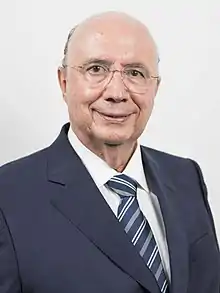 Henrique de Campos Meirelles (born August 31, 1945) is former Minister of the Economy and an executive of the Brazilian and the international financial sectors and former president of Central Bank of Brazil (Portuguese: Banco Central do Brasil) where he remained in office from 2003 to 2011. He chairs J&F's board of directors, company that owns Banco Original, JBS and Vigor, among others. He is also a member of the board of directors of Azul Brazilian Airlines.[1][2][3][4]