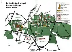 - "Beltsville Agricultural Research Center: Beltsville, MD." U.S. Department of Agriculture. Retrieved on September 2, 2018. "10300 Baltimore Avenue Bldg. 003, Rm. 231, BARC-West Beltsville, MD 20705"