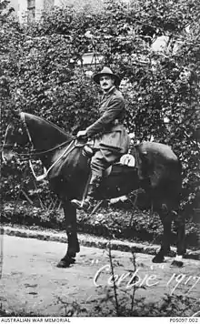 In November 1915, Bachtold was transferred to Egypt on special duty and was confirmed as a captain a month later. In March 1916, Bachtold took command of the 14th Field Company,[11] and was promoted to major on 19 April. The 14th Field Company embarked for France in June 1916 and joined the fighting on the Western Front the following month, serving around Pas-de-Calais until October when the company was moved to the Somme Department.[1] Bachtold was mentioned in despatches a second time in January 1917.[12]
