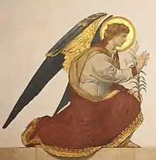 Despite his Roman Catholic faith, very few of Brewer's pictures could be described as devotional. Even the illustrations undertaken by both Brewer and his father, Henry William Brewer, for Stuart Rose's 1891 book, 'St. Ignatius Loyola and the Early Jesuits', focused on buildings and landscape.[10] Brewer's subjects were chosen rather with an eye to commercial success. In 1928 however, he was commissioned to create wall paintings in the Lady Chapel of St Peter's Church, Ealing. The painted figures, representing the Annunciation, are placed around a reredos designed by Leonard Shuffrey - creating an assemblage of significant visual impact. This is Brewer's only known church decoration work[11]
