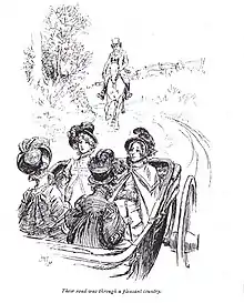On the family visit to Sotherton Court, Henry transports the five ladies in his fashionable barouche, an upmarket vehicle with seating for four inside and two up top, in its day the equivalent of a modern convertible.[4] On the journey, Henry flirts with Julia who is seated beside him on the box.