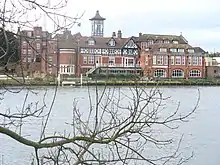 Kendall's works included schools, a few churches including the round-arched church of St John, Harrow Road, Kensal Green (1844), parsonages, two lunatic asylums (Herrison Hospital and St Francis Hospital) and many houses including the remodelling of Knebworth House (1843), Shuckburgh Hall (1844), 'Pope's Villa', Twickenham (built c. 1845 on the site of Alexander Pope's house, which had been demolished in 1808/09),[5][6] and a house in Farnborough, Hampshire, built in 1860 for publisher Thomas Longman, subsequently home of Empress Eugénie of France and, since 1927, home to Farnborough Hill Girls School.[7] He also designed the mausoleum of the 2nd Earl of Kilmorey and his mistress, built in Brompton Cemetery, London, in 1854, then relocated to Woburn Park, Chertsey in 1862, and moved to Isleworth in 1870.[3] He was District Surveyor for Hampstead from 1844 and produced a book on school designs.[2] Elsewhere in London he designed the Stonebridge Park Estate (originally intended to be called Harlesdon Park), a select estate of detached and semi-detached houses,[8] two of which survive (though one is currently under threat of demolition by Brent Council).[9] A view of the projected estate, showing a church that was in fact never built, depicts an idealised Victorian middle-class suburb.[10] The estate was advertised by its developers as follows: "The aspect is South and South West overlooking 30 miles of beautiful country and THE SURREY HILLS. The surrounding lands are the property of large landholders or Ecclesiastical Corporations thus rendering it certain that no small houses or nuisances will be built in the neighbourhood ... It is proposed that Gates and Lodges shall be erected and the roads kept quite private ... this will render the Park like a Private Garden and will ... effectually Prevent all beggars, and similar annoyances, and all those little petty thefts and injuries which are so vexatious, and which are so frequently committed in the gardens and out-buildings in the neighbourhood of the Metropolis". By 1876 over 60 "smart new villas" had been built, along with the large 'Stonebridge Park Hotel'. Stonebridge Park became the home of many of the men who ran the Willesden Urban District's local government.[11][12] Towards the end of his career, Kendall established a practice with his son-in-law, Frederick Mew.[2]
