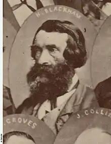 Blackham was born in Newry, Northern Ireland on 14 January 1817. In 1840, along with his parents Richard and Sarah and his five younger siblings, he emigrated to Australia. Travelling on board the 'Birman' for 108 days they arrived in Port Adelaide.[1] They settled in the One Tree Hill area of South Australia and purchased land for farming which they called Trevilla (this land is now called the 'Blackham Environmental and Conservation Centre' owned by Trinity College, Gawler).[2] In 1851 Blackham married Elizabeth Kathleen Lynch, they had five children (Hannah, Richard, Henry, James and Desmond) and were both involved in building a local church and schoolhouse. Blackham was the uncle of Australian cricketer Jack Blackham.