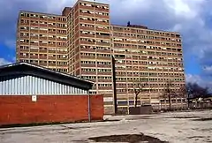 ![]() 2002 photograph of a vacant remaining building in the housing project. | |
