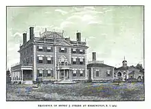 Henry J. Steere was born in Providence, Rhode Island on April 11, 1830 to Alice Smith (1789–1863) and Jonah Steere (1788–1871), a manufacturer, saddler and harness maker. Henry was their only surviving child. Steere was a Yankee, whose ancestor John Steere immigrated to the Providence from Great Britain before 1660 and married the daughter of Reverend William Wickenden.[1] Henry J. Steere was educated at home and in the public schools, eventually graduating from Providence's high school. Steere then became a clerk in the Merchants Bank.