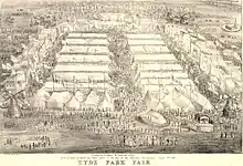 As the boom of distant guns announced the departure of the young Queen for Westminster Abbey the showmen struck their gongs and unfurled their cloths, while the keepers of the booths and stalls rolled up their canvas fronts and commenced operations. The theatre in the park played Benjamin Bowbell or the Illustrious Stranger many hundreds of times ... The fair [was] open for several consecutive weeks ... A pot of beer rose to a shilling and a penny loaf to sixpence ...[18] Those were the days of the fat giantesses, the fair Circassians, the Hottentot Venus, the dwarfs, the living skeletons, the two-headed boys, the performing pig, the fortune-telling horse. People had never dreamed of a variety programme in a veritable palace, and even the gentry patronised the booth.[5]