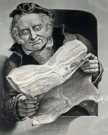 In the following February the painting was selected for exhibition at the British Institution for Promoting the Fine Arts in the United Kingdom (also known as the British Gallery) in Pall Mall, London. While some of the London press commented on Parker's ‘uncultivated style’, it was also seen as being ‘a remarkable picture’ that ‘reminds us of that master of the satirical art, Hogarth'.[15] Parker’s painting had put Newcastle and its corporation on the map, and it was purchased by the mayor and the corporation for 100 guineas.[16]