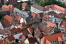 - Marketplace with Town Hall, timber-frame houses and Marienbrunnen (fountain)