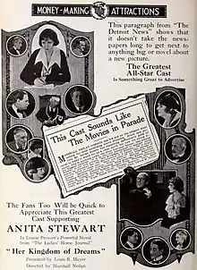 Her Kingdom of Dreams is a 1919 American silent drama film directed by Marshall Neilan and starring Anita Stewart, Spottiswoode Aitken and Frank Currier.[1]