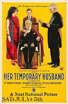 Her Temporary Husband is a 1923 American silent comedy film directed by John McDermott and starring Owen Moore. Based upon a play of the same name by Edward A. Paulton,[1] it was produced and distributed by Associated First National (later First National Pictures).[2]