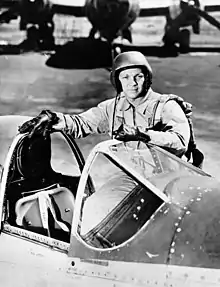 Herbert Henry Hoover (May 18, 1912 - August 14, 1952)[1] was an American NACA experimental test pilot who, on March 10, 1948, became the first civilian ever and second man ever to break the sound barrier,[2] a feat for which he was awarded the Air Medal "for meritorious achievement while participating in aerial flight." Hoover, with Howard Lilly by his side, flew the iconic orange Bell X-1 during this historic flight, and the craft sustained minor damage when the nose wheel failed to extend during landing. During his short career with NACA, Hoover completed more than a dozen supersonic flights.