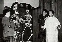 ![]() Herbert Evans (second from left) appears with a scared Three Stooges in The Hot Scots (1948) | |