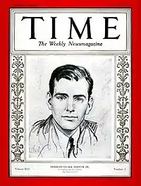 In 1928, Herbert Jr was hired by Western Air Express to set up its communications system.[8] Over the next year and a half, he set up a network of stations across the Western U.S. capable of guiding radio-equipped aircraft along 15,000 miles of airways.[8] As communications chief of Western Air Express, he soon was managing a staff of 75 engineers and overseeing the purchase of over $200,000 of radio equipment.[8] In June 1930, he was promoted to chief engineer of Western Air Express.[8] During his time with Western Air Express, he was mainly located at Alhambra, California, but also made frequent trips to the airline's headquarters in Los Angeles.[8] In 1929, Western Air Express, Boeing and American Airways formed a non-profit corporation, Aeronautical Radio Inc. to serve as the airline industry's single licensee and coordinator of radio communication outside of the government. (Pan American World Airways and Curtiss-Wright also agreed to participate.[8]) Hoover was selected as the first president of Aeronautical Radio Inc., a selection that led to Time magazine putting Hoover on its July 14, 1930 cover.[8]