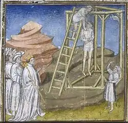 ![]() Herbert II de Vermandois hanged on the orders of Louis IV d'Outremer | |