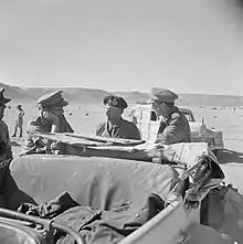 The Allies were victorious at El Alamein but for Lumsden, his confrontation with Montgomery in the heat of battle proved ruinous. Lumsden was replaced by Horrocks, who had previously recommended Lumsden to Montgomery, while Gatehouse was also removed from command.[4] On his return to London, on entering his club Lumsden was heard to comment, "I've just been sacked because there isn't room in the desert for two cads like Monty and me".[5] After Lumsden's death in 1945 Montgomery, notoriously sensitive to criticism of his generalship, blamed the near failure of his attack on 24/25 October 1942 on Lumsden.[6][7]