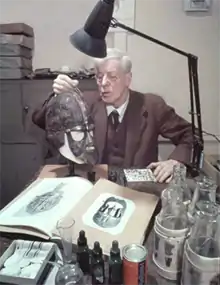 From 1907 until 1927, Maryon taught sculpture, including metalwork, modelling, and casting, at the University of Reading.[10][59] He was also the warden of Wantage Hall from 1920 to 1922.[59] Maryon's first book, Metalwork and Enamelling: A Practical Treatise on Gold and Silversmiths' Work and their Allied Crafts, was published in 1912.[60] Maryon described it as eschewing "the artistic or historical point of view", in favor of an "essentially practical and technical standpoint".[61] The book focused on individual techniques such as soldering, enamelling, and stone-setting, rather than the methods of creating works such as cups and brooches.[62][63] It was well received,[64][65] as a vade mecum for both students and practitioners of metalworking.[66][62] The Burlington Magazine for Connoisseurs wrote that Maryon "succeeds in every page in not only maintaining his own enthusiasm, but what is better in communicating it",[67] and The Athenæum declared that his "critical notes on design are excellent".[68] One such note, republished in The Jewelers' Circular in 1922,[69] was a critique of the celebrated sixteenth-century goldsmith Benvenuto Cellini; Maryon termed him "one of the very greatest craftsmen of the sixteenth century, but ... a very poor artist",[70] a "dispassionate appraisal" that led a one-time secretary of the Metropolitan Museum of Art to label Maryon not only "the dean of ancient metalwork",[71] but also "a discerning critic".[72] Metalwork and Enamelling went through four further editions, in 1923,[73] 1954,[74] 1959,[75] and posthumously in 1971,[76] along with a 1998 Italian translation,[77] and as of 2020 is still in print by Dover Publications.[78] As late as 1993, a senior conservator at the Canadian Conservation Institute wrote that the book "has not been equalled".[79]
