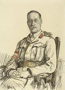 Shortly after Watts' retirement, the outbreak of the First World War meant that he returned almost immediately to the Army. He was given command of 21st Brigade in 7th Division;[5] the division was composed of regular battalions recalled from overseas service on the outbreak of war and formed into a new division in England. Watts remained with the brigade until the Battle of Loos in September 1915, when Major-General Thompson Capper, commanding the division, was killed in action and Watts took over command. With the brief exception of a few days in July 1916 as General Officer Commanding 38th (Welsh) Division - under Watts, the division took its objective, Mametz Wood, though with severe losses - Watts would remain with the division for the next year and a half. He later became General Officer Commanding the XIX Corps.[6][7]