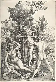 Famous examples from the visual arts include Albrecht Dürer's print Hercules at the Crossroads (1498), Paolo Veronese's Allegory of Virtue and Vice (1565), Annibale Carracci's The Choice of Hercules (1596), Gerard de Lairesse's Hercules between Virtue and Vice (1685) and Mariano Salvador Maella's mural in the Royal Palace of Madrid, Hercules between Virtue and Vice (1765–66).[4] The story appears in musical compositions such as Laßt uns sorgen, laßt uns wachen by Johann Sebastian Bach and The Choice of Hercules by George Frideric Handel.[4]
