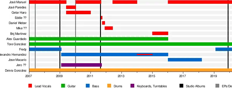 - Alexandro "Alexa/Picofaradio" Hernandez- bass (2009–2016), vocals (2014–2015)