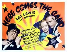 Here Comes the Band is a 1935 American comedy film directed by Paul Sloane and written by Paul Sloane, Ralph Spence and Victor Mansfield. The film stars Ted Lewis and His Orchestra, Ted Lewis, Virginia Bruce, Harry Stockwell, Ted Healy and Nat Pendleton. The film was released on August 30, 1935, by Metro-Goldwyn-Mayer.[1][2]