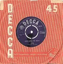 "Here Comes the Night" is a 1964 song, written by Bert Berns. It became a hit for Northern Irish band Them, fronted by Van Morrison, in March 1965, charting at No. 2 in the UK and No. 24 in the US. Them's single is listed at either No. 33 or No. 36 in the Top 100 best-selling UK singles during the calendar year 1965, depending on source.[2][3]