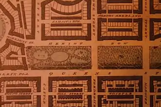 John Ainslie's map of 1804 shows the gardens prior to their becoming a large common pleasure garden serving both Queen Street and Heriot Row properties (a function it still serves). The gardens were formalised as a single communal (but private) space by 1836.[6]