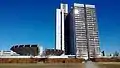 Herlev Hospital (former Danish: Amtssygehuset i Herlev) is a hospital in Herlev, Denmark, close to Copenhagen. The building is 120 metres (390 ft) tall[1] and has 25 floors. It is famous for being Denmark's tallest building.[2] Its modern, functional architecture in bright concrete, glass and bronze-colored aluminum gives a unique impression.