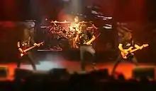 Hermética was part of the 1994 edition of the Monsters of Rock festival in Buenos Aires, alongside Black Sabbath, Slayer, and Kiss.[15] Shortly after, they released their third studio album, Víctimas del Vaciamiento. As the Stadium's hall was not big enough to accommodate the audience, they held a concert at Estadio Obras Sanitarias. Hermética recorded their performance and released it as a live album titled Lo último. Meanwhile, their newest studio album received gold certification. The band recorded a cover version of a folk song, "De los pagos del tiempo", also by Larralde.[16] The band had received proposals to play at Obras the previous year, which the accepted with the condition that they would organize it themselves.[13]