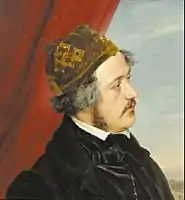 He had originally intended to devote himself to agriculture, but was attracted to art instead and began his studies at the Berlin Academy with Carl Wilhelm Kolbe.[1] His first exhibition was held there in 1820. The following year, he transferred to the Kunstakademie Düsseldorf, where he studied with Peter von Cornelius. He also worked as an assistant to Karl Stürmer, who was painting a "Last Judgment" at the tax court in Koblenz. It was left unfinished due to lack of resources. He later alternated between Düsseldorf and Munich, where he decorated the arcade at the Munich Hofgarten with several frescoes.